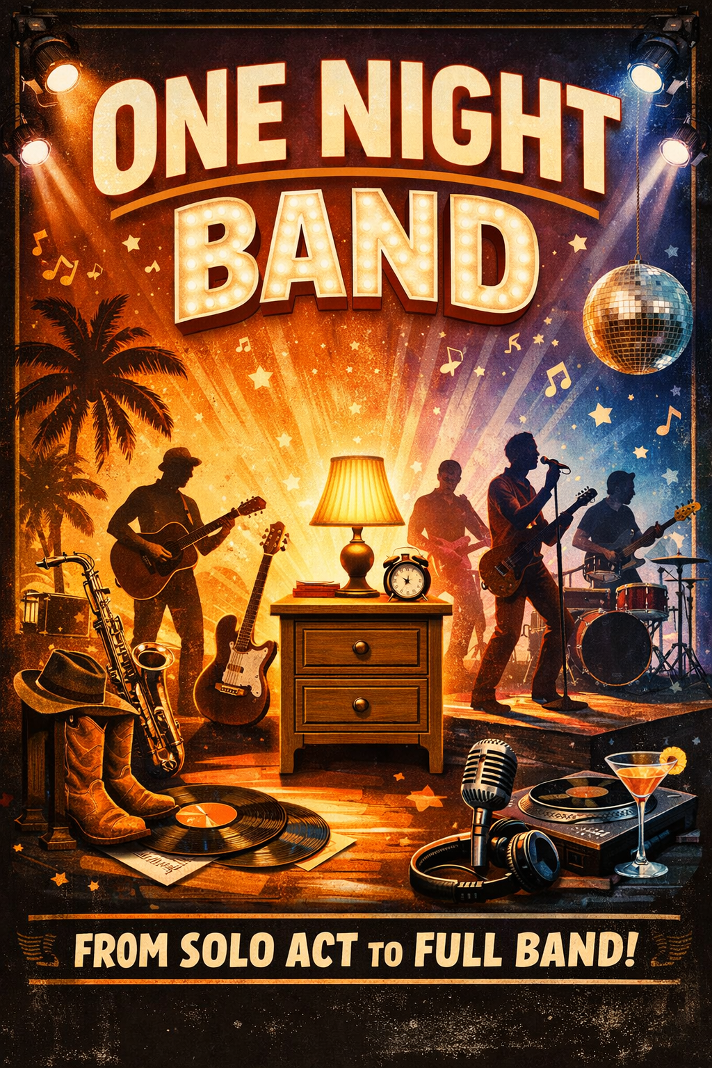 Whether you’re looking for a laid-back acoustic vibe, a full dance-floor–packed party band, or something completely unique in between—we create a custom lineup designed specifically for your event. No templates. No “one-size-fits-all.” Just the right musicians, the right sound, and the right energy for your night.